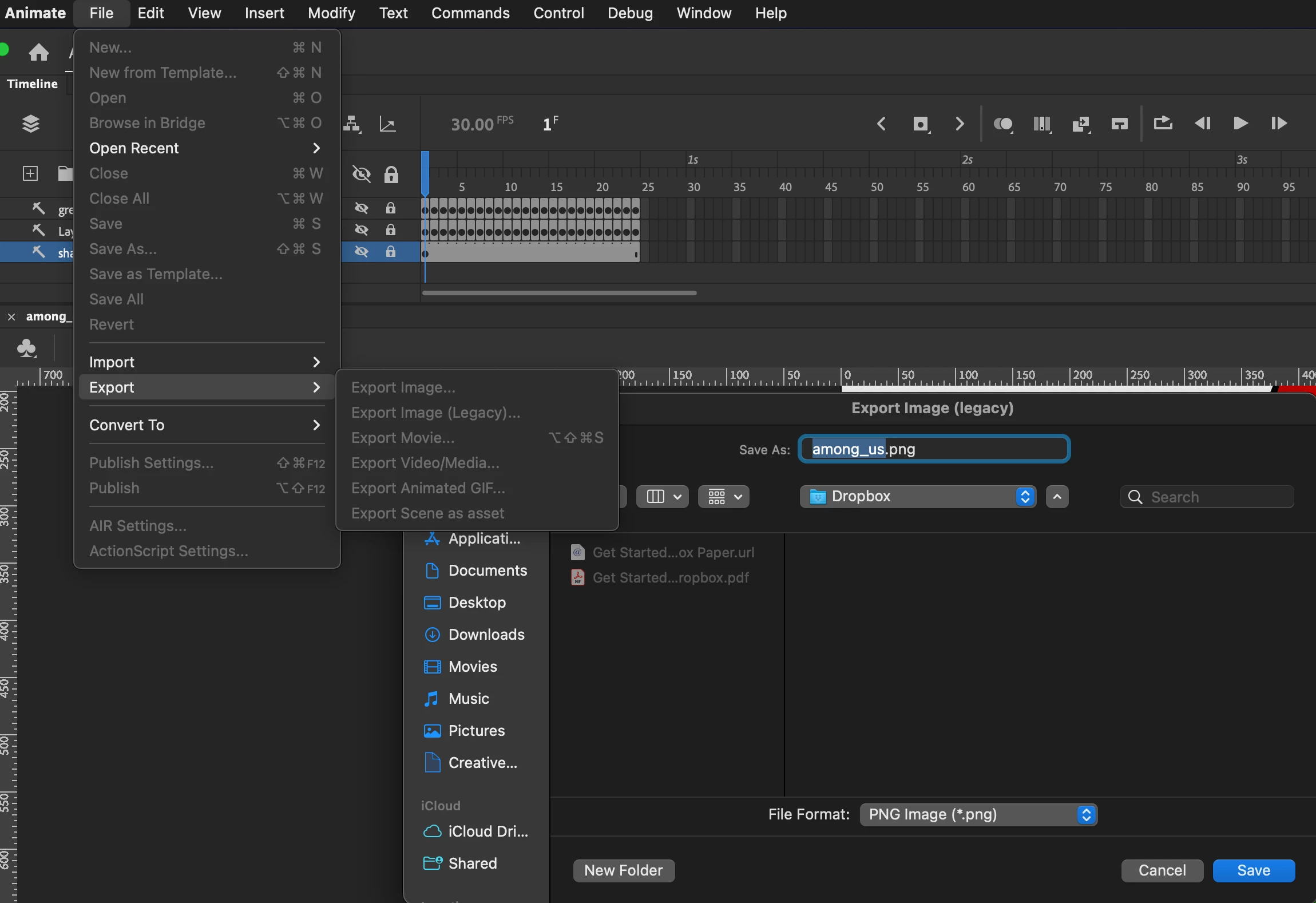exporting PNG sequences in Animate