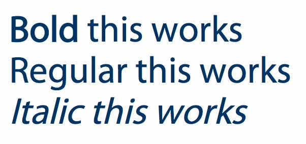 Now let's say I want to put all my text content in an external XML file so the client can update it and I don't want to have to explain the inner workings of Flash and tell them that they can't use the bold tag, they have to use the font face tag and set it to some random name that I come up with for the bold font library symbol (in case we don't want to use Myriad in the future).