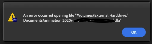 Before anyone asks, Animate is up to date, no other files are giving me an issue to open.