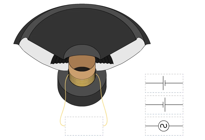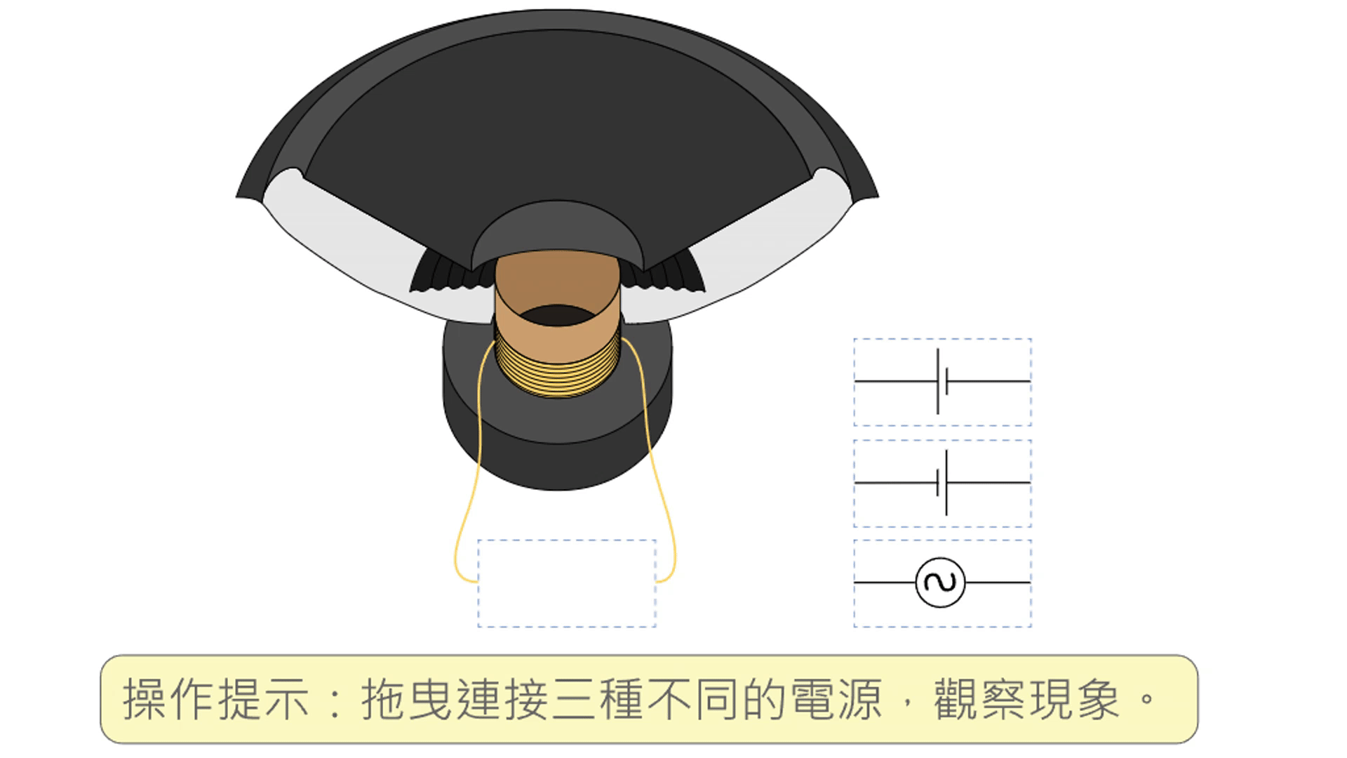 Below the speaker is a designated area for electrical connection, and to the right are three current components labeled 【ball_1】, 【ball_2】, and 【ball_3】. Users can drag the current components to the designated area and trigger their respective animation contents.