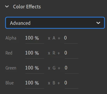 Hello I am trying to modify the color effect of a movieclip my problem is the only way animate does this from what I can see is through the advanced settings of color effects in the editor