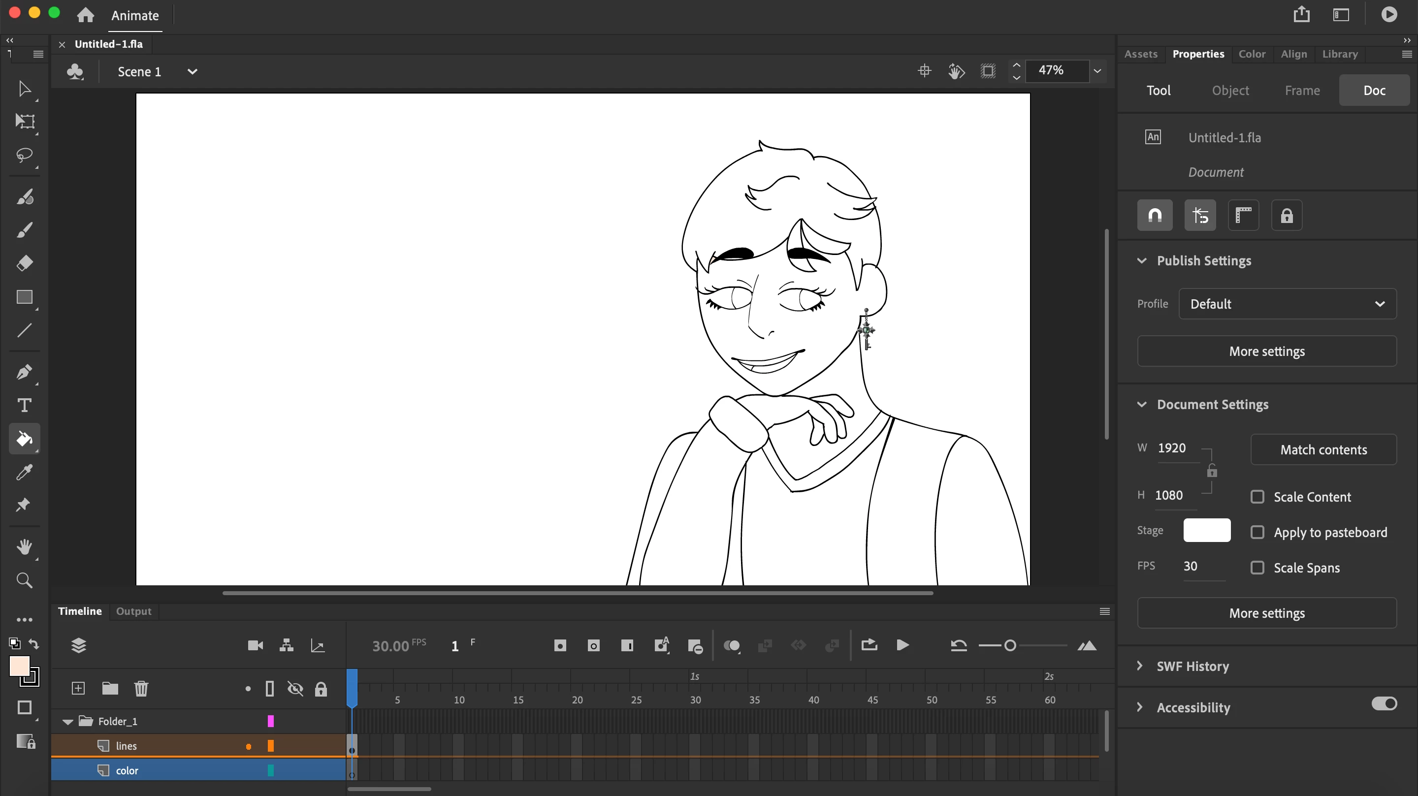One worry about coloring in on the lines layer is that if you are doing some of that with the paint brush tool, the color may go over the lines. But, with the brush tool you can choose to have the color shape area go behind the lines. See this option that appears when you're on the brush tool.