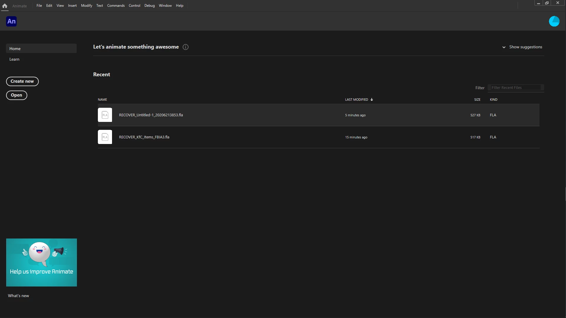 How do I delete a document in Animate?