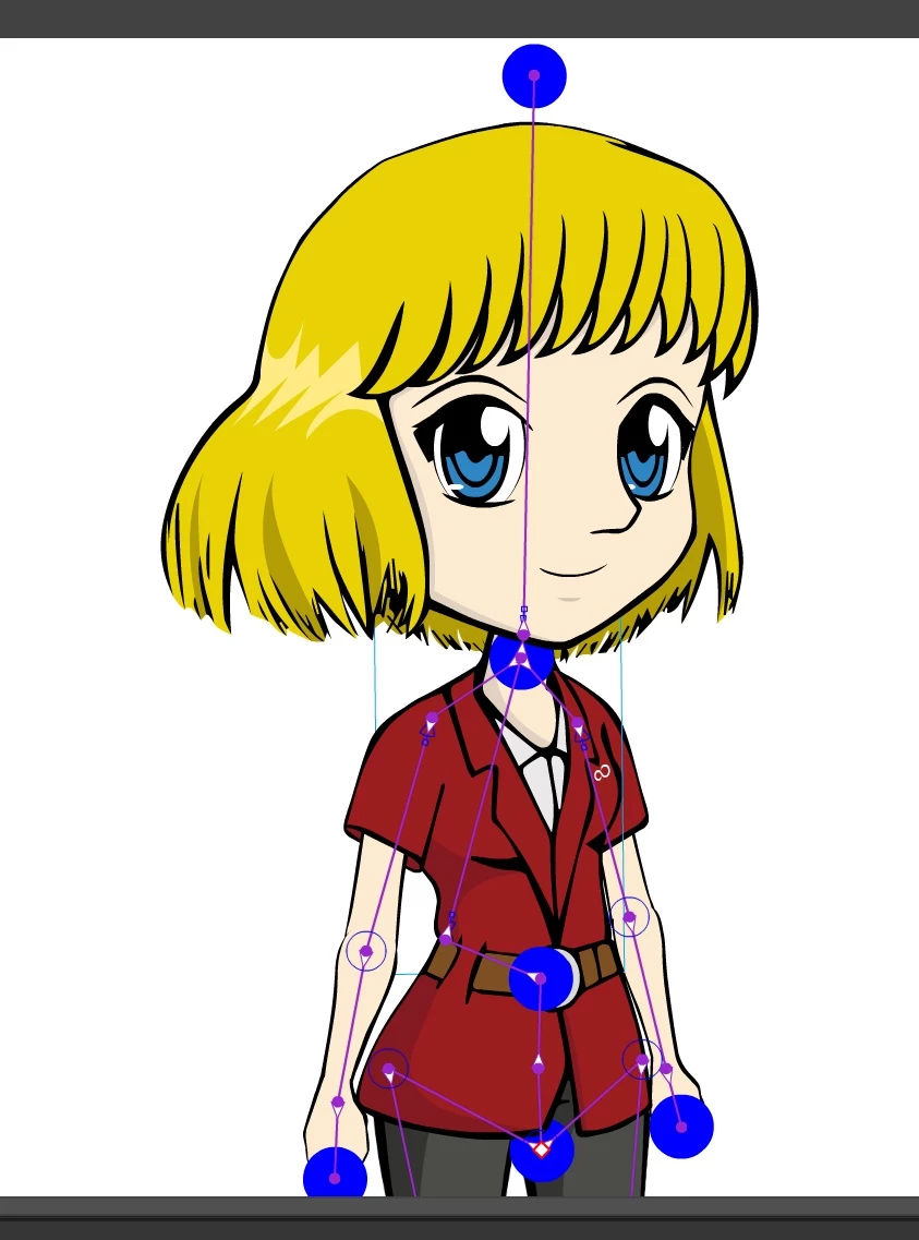 I have the skeleton mapped out on the character, but the hair, eyes, and hands have multiple hand drawn frames that I wish to animate. I tried doing standard parenting of layers (like the hair frame layers to the head) but when I move the rig, it doesn't move with it. I've been teaching myself how to use the program and I'm not sure what to do here, so any help would be appreciated. Thanks guys.