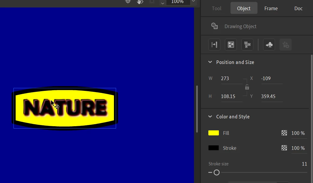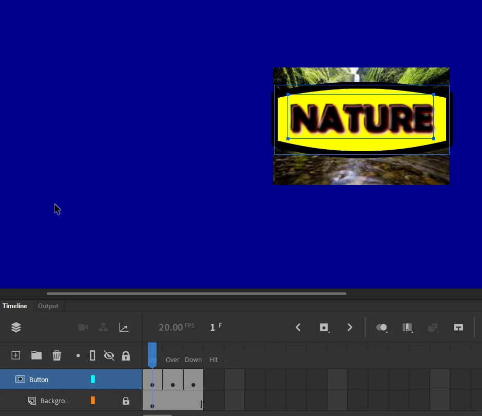The above image represents the button that I created with the Rectangle Tool and using the Selection Tool to adjust it to look like a more unique shape.
