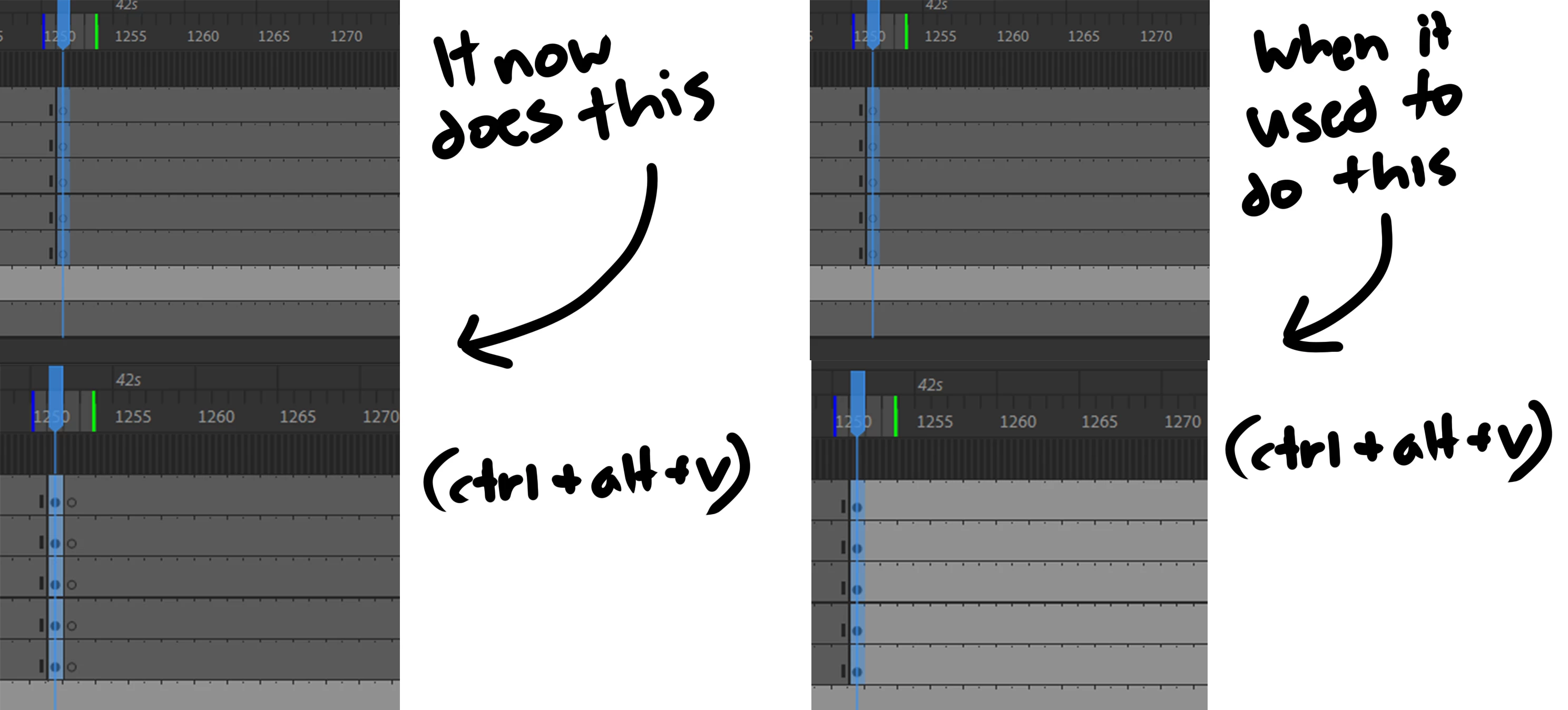 I have all the frames selected, and I want to paste them all via ctrl + alt + v , which before would paste the keyframes into ALL of the timeline, rather than just the single frame.