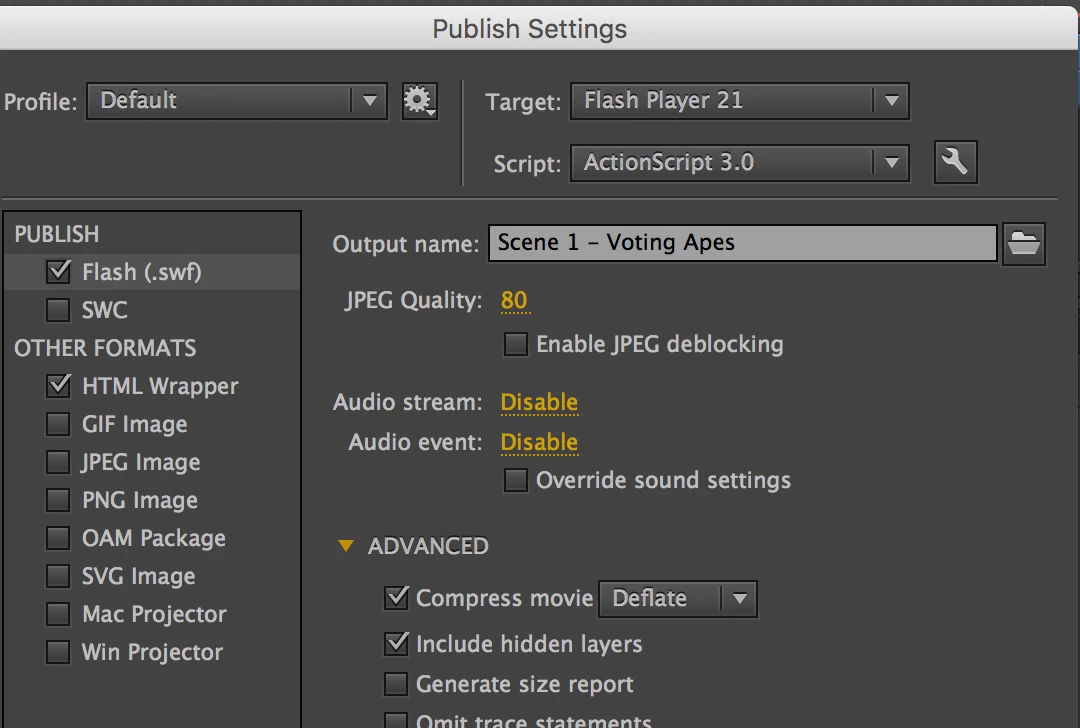 Using adobe animate 'export video' option, the quality turns into this: