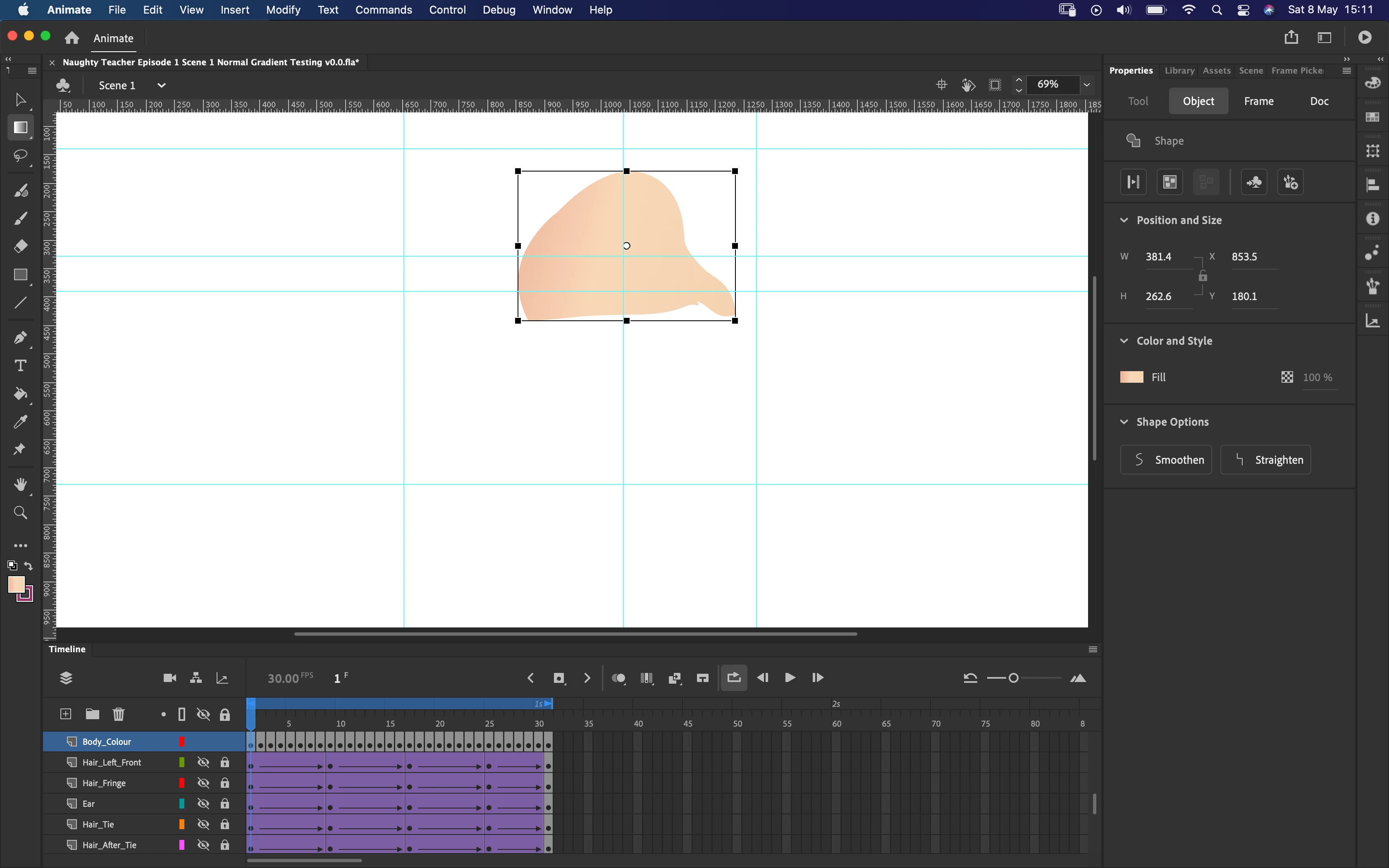 Hey i have a keyframed shape drawn animation and i want to add a gradient to a body part. Ive chnage the angle and size of the gradient but want to have it in the same direction for each from, i know theres a way to do it becuase i accidenlty did it where if i would select another frame and press x twice to change the colour and then change it back it would keep the gradient transformation however i cant do it again