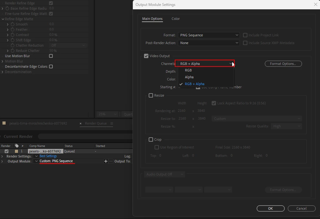 How to import rotobrushed videoframes from AE to Animate while preserving the alpha channel?