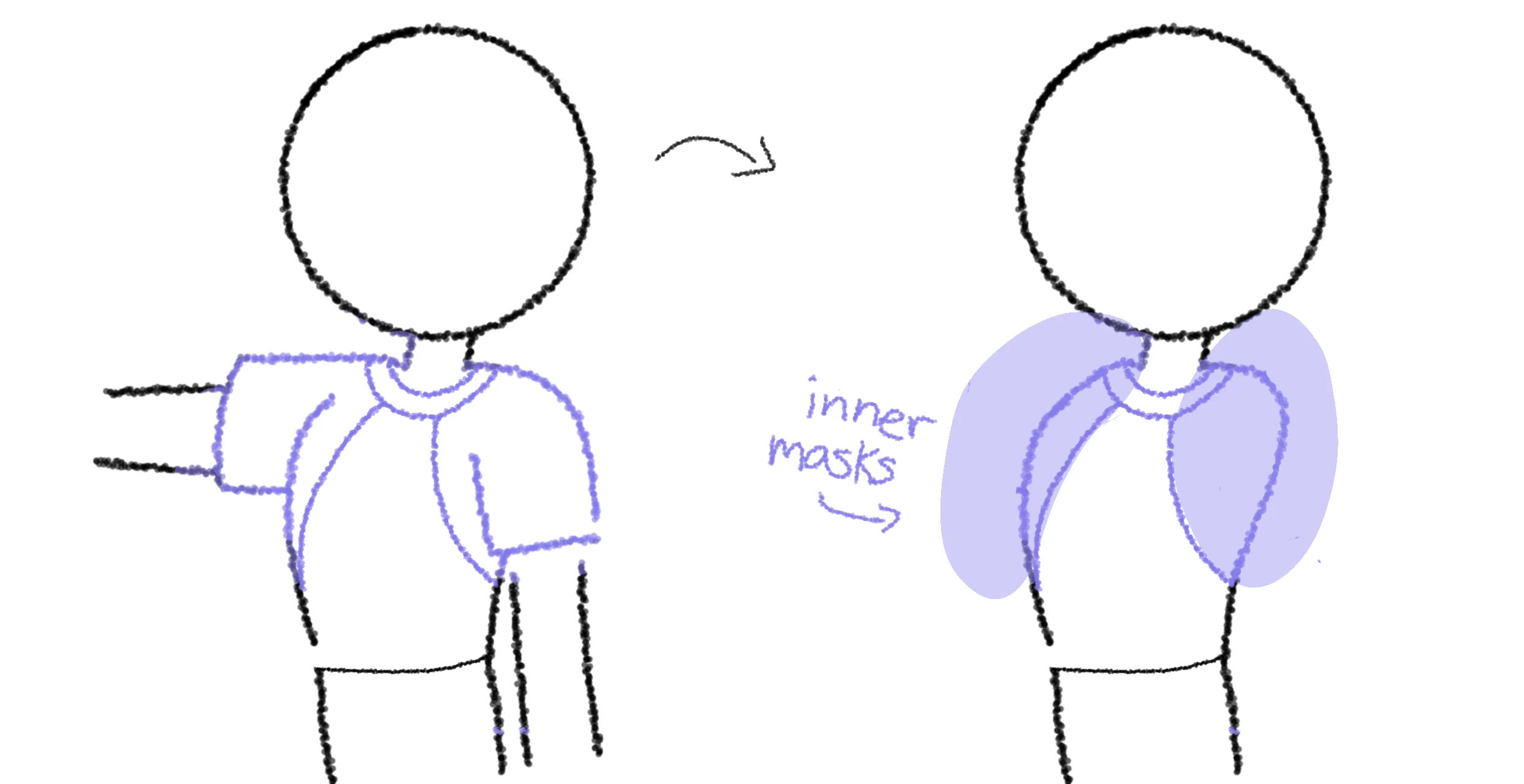 Though. I was wondering if there was a way to replicate an effect that the side masks affect the outline of the shirt, so the outline follows the masks? Like the image attached below for example (or if there's an easier way of going by this). Any help is greatly appreciated ◡̈