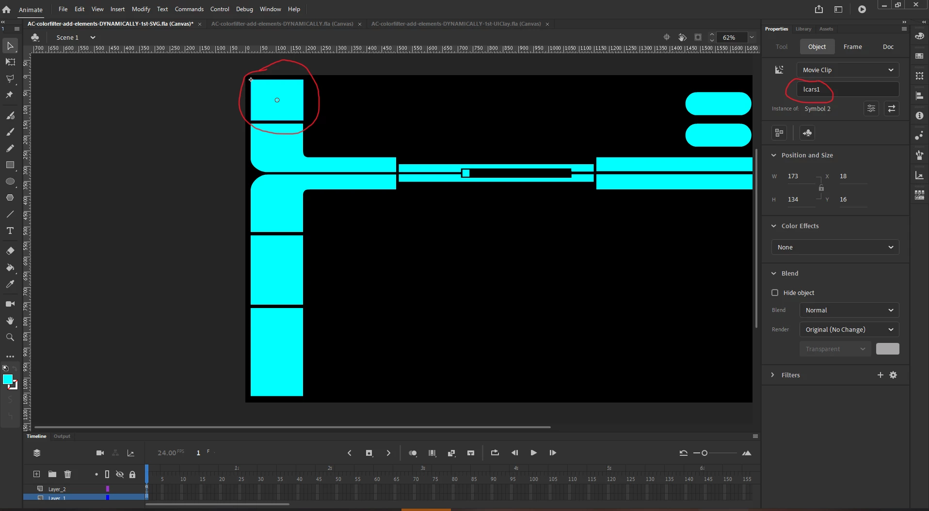 How to target a SVG or Bitmap within a Movie Clip Html5/Canvas with JavaScipt dynamically?