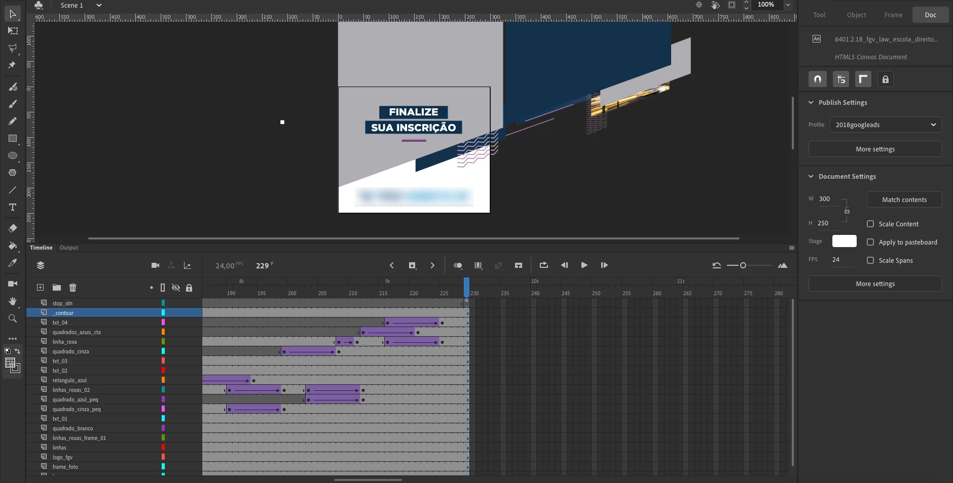 In Animate everything appears right. I'm using the 300x250 measurements. But when I go to HTML5 Validator, the image gets cut off. Attached is the code I'm using for clicktag insertion and the cropped image from the HTML5 Validator. Please help me!