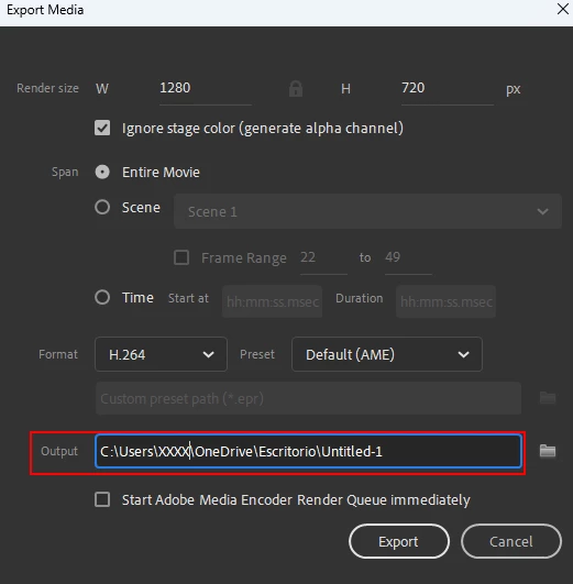 Hello, try changing the export location, preferably somewhere in your local drive.