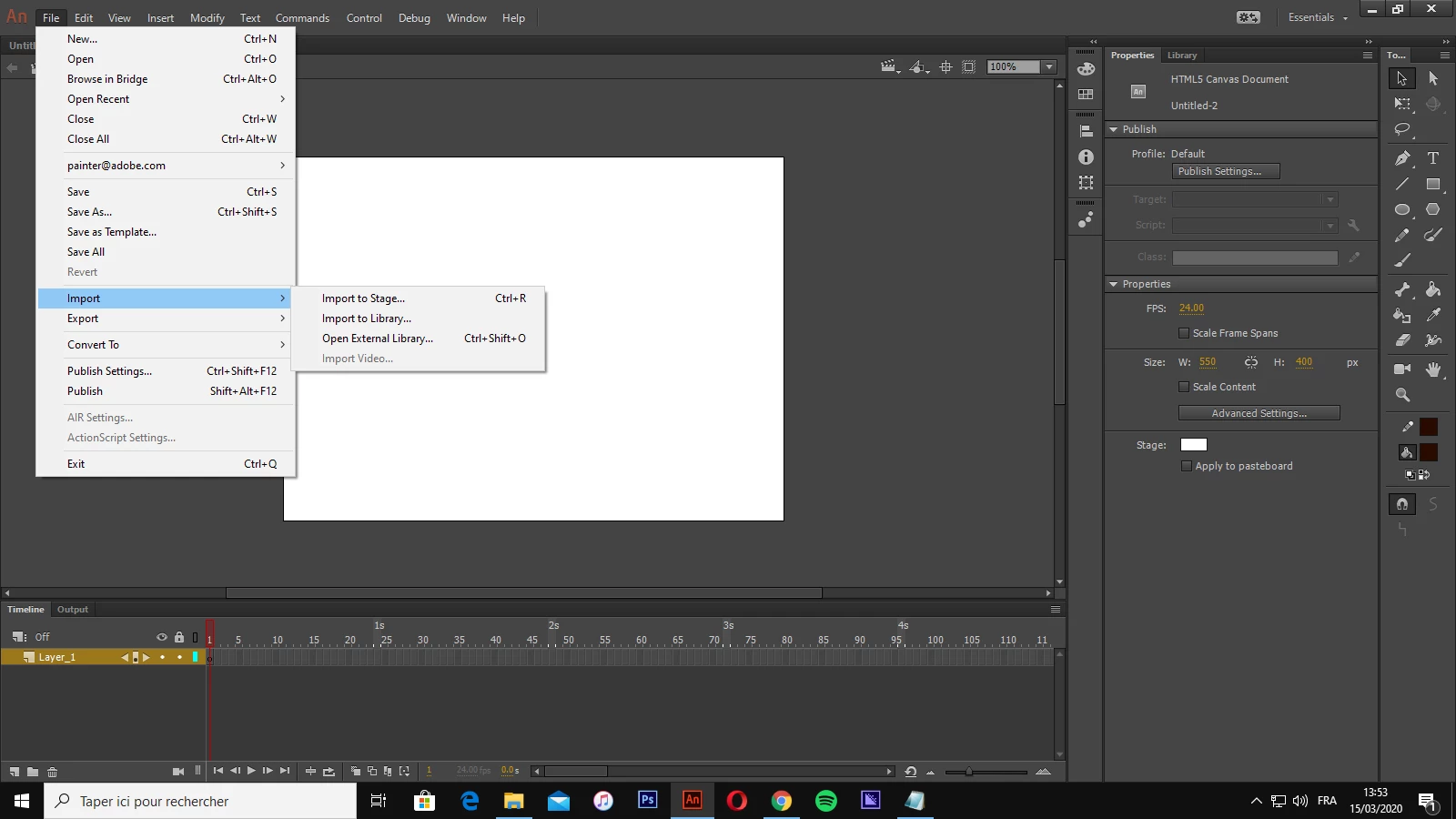 hello, i have a problem with adobe animate cc. when i want to import a movie or a video to animate, i can't click on the import movie button, because it shows all gray, knowing that i already donloaded adobe media encoder. can you please help.