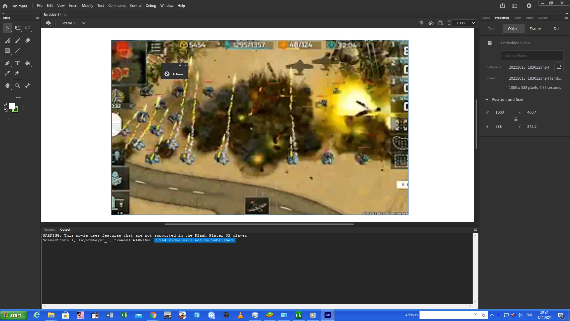 I Imported An MP4 (H.264) Video Into Animate And Can't Export (Publish) It
