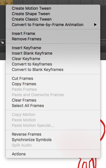 that will allow you to see a ghost of the previous drawing. Draw the man now with his arm up like he's going to wave. Now select frame 20 and hit F7 again. Draw a new drawing extending the arm out a bit as if he's thrusting his arm outward a bit. Now on frame 24 hit F7 again and it will create another empty keyframe. Go back to frame 20 and select that art by clicking the keyframe then hit Command C on your keyboard or Control C if you're on a PC and then go to frame 24 and click the empty keyframe and hold down Shift Command or Shift Control and it will paste the art from frame 20 which is in your clipboard onto the stage and it will also register the art in exactly the same position as it was on frame 20. Now click drag in one smooth motion across frame 20 to 25 and the selected frames will turn yellow. Now right click on those frames and select Copy Frames.