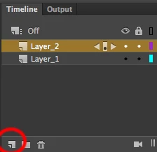 Click the scene 1 words and it will bring you out back to the main timeline. Create another layer by hitting the New Layer icon to the left of the timeline.