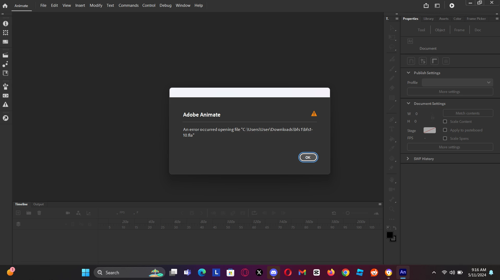 try opening the repaired fla