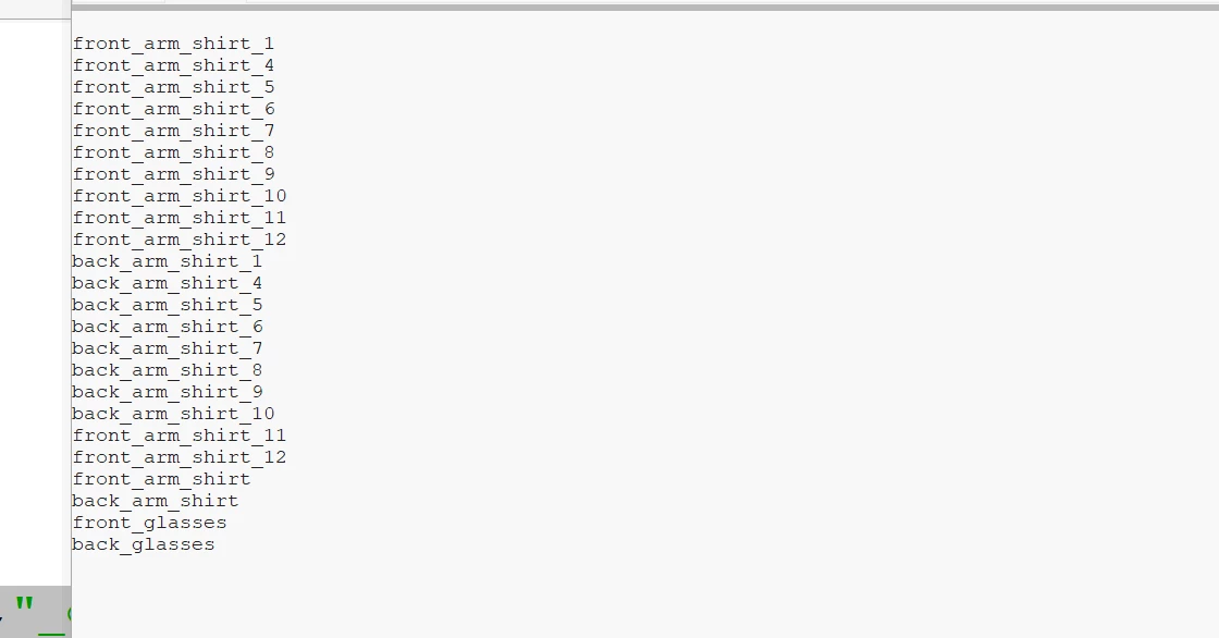 var body_addl=["","_shirt","_jacket","_dress","head,fx","glasses","collar","tattoo","wand","backpack","beard","biodrip","eyepatch","mask","bracelet","glove","torso_fx","shoe"]