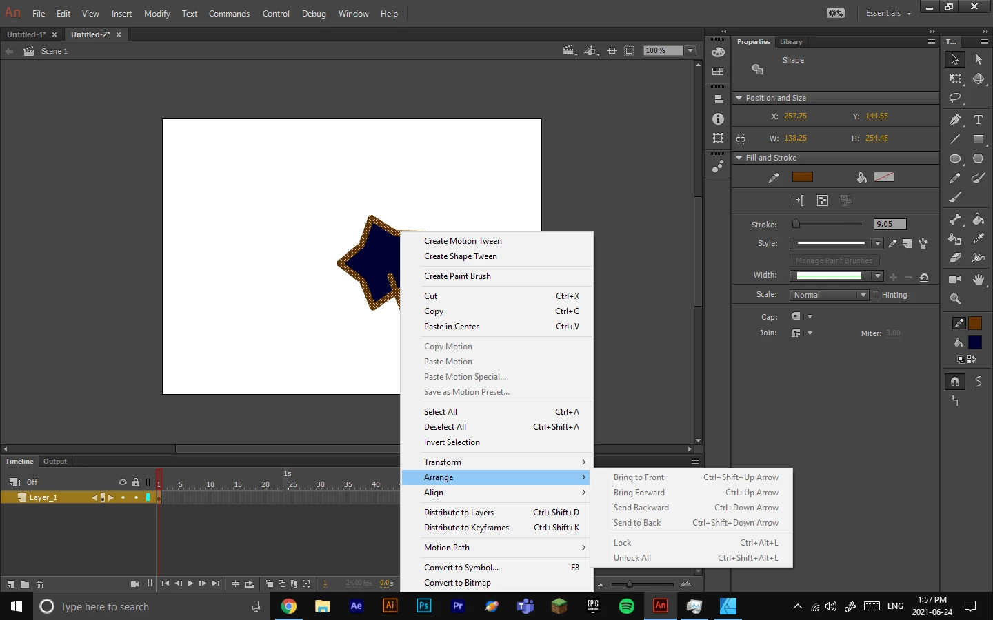 @Mihiru Goonaratne Arrange will not be available for raw shapes like the one you have created (because the intersecting raw shapes get merged). This is enabled only for drawing objects, groups, symbols, bitmaps etc.