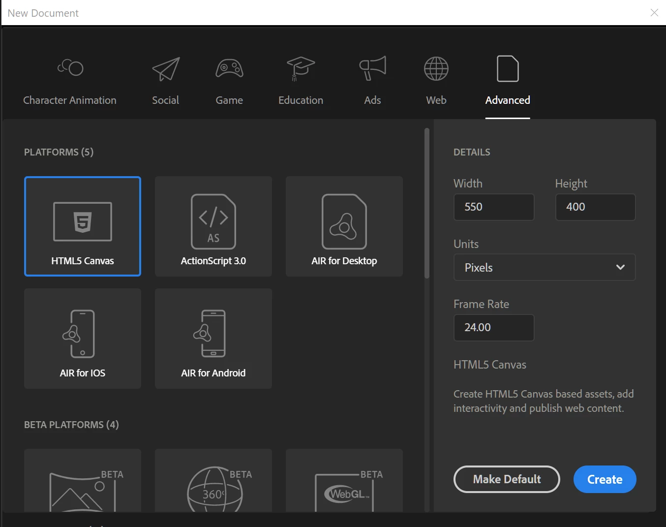 I'm new to Animate, so wich format should I start up with?