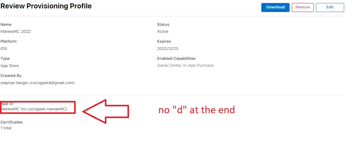 I have a feeling that when publishing my IPA with Adobe Animate it's making a bug and add this "d" at the end of the app id... (I've tried with Adobe Animate 2021 and 2022) and with AIR 33.1.1.713