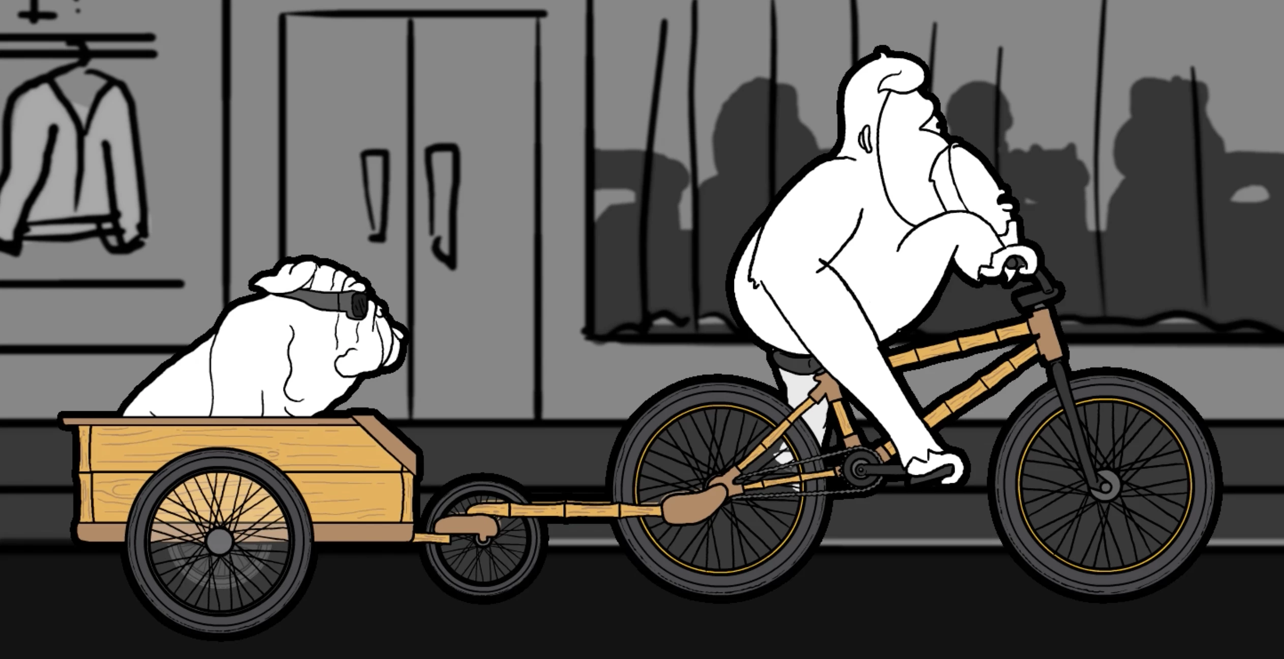 - notice how you can see the the character's arm behind the bicycle wheel, the part of the trailer through its wheel (and so on); but it completely covers the background we should see through the wheel also.
