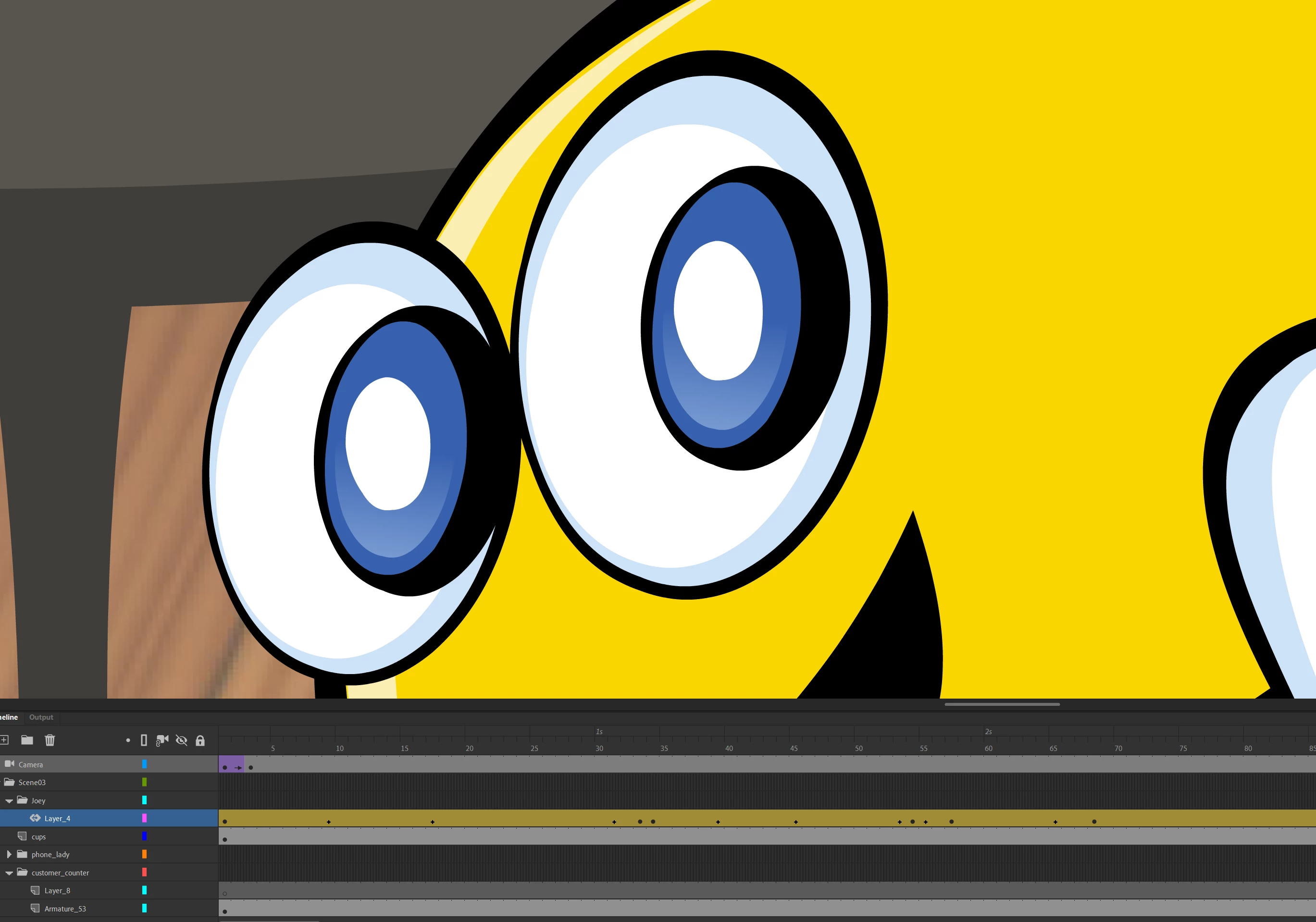 Currently I am working on an animation where I am having a character look around. However, upon running a test movie as well as export, the eyes and pupils become flat on the top. I'm not sure how this is occuring, as the eyes are fine in the file itself. Images are included.