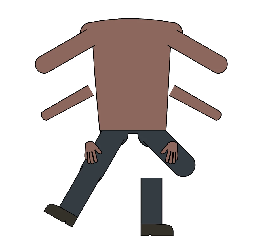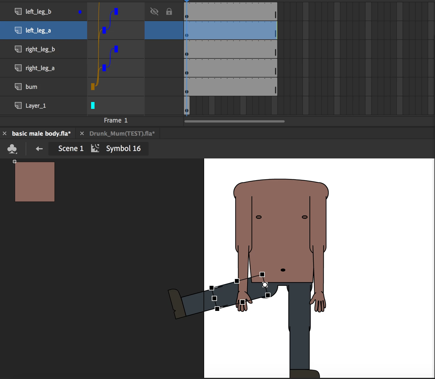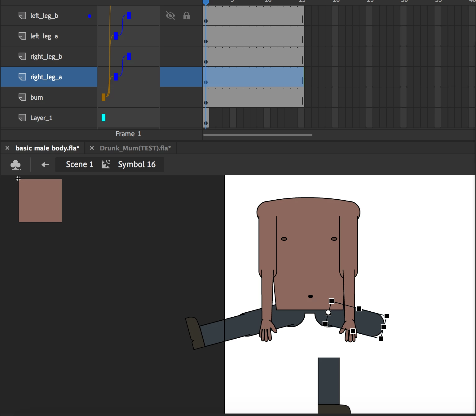 When I click the left leg A, it moves correctly, taking with it left leg B. But when I move right leg A, despite the fact that it is nested with right leg B, it behaves as if it is not. (please look at images below).