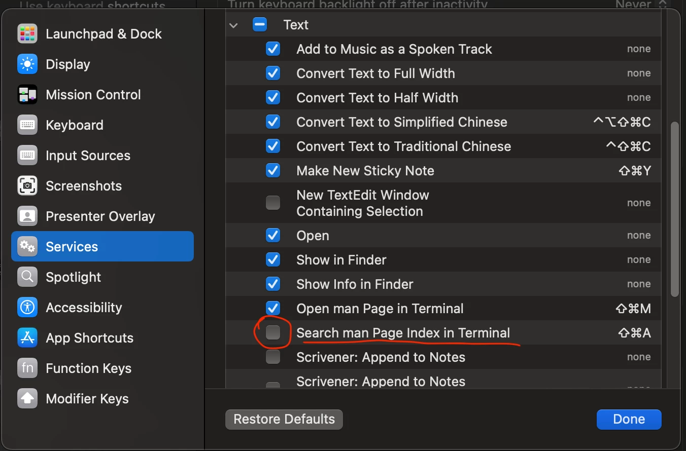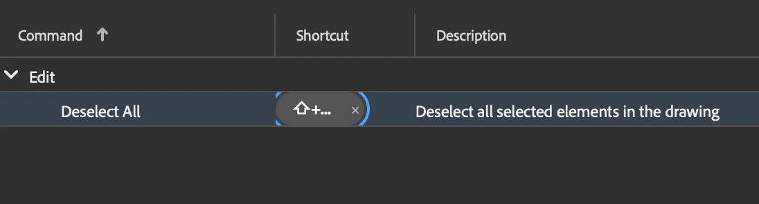 I just noticed the "deselect all" shortcut, command-shift-A has stopped working. When I try to overwrite it in the Shortcuts settings, it appears as command-shift-three dots (see attachment), as if the "A" didn't exist on the keyboard.