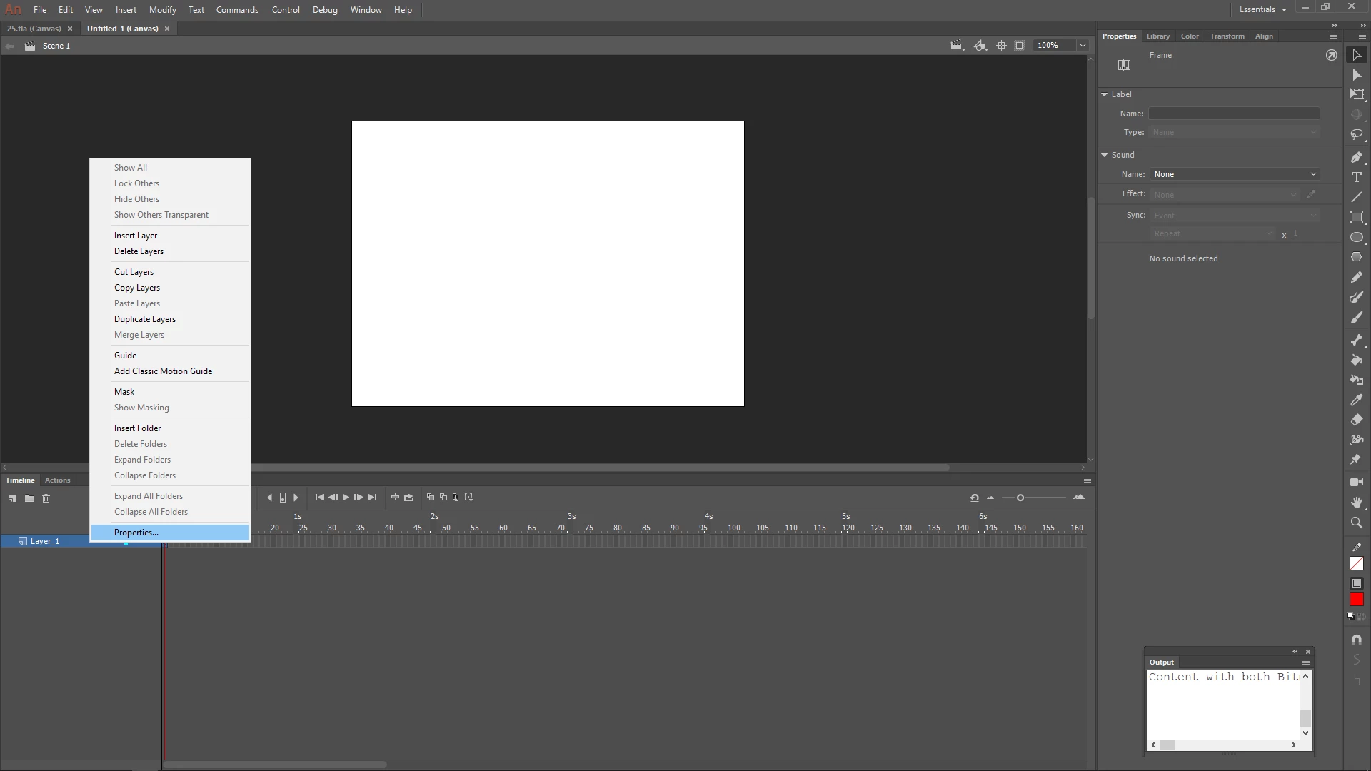 Another way to make objects transparent is to select th object and Convert it to a symbol (Modify>Convert to Symbol) and the select th object and in the Properties Panel you will see "Color Effect" choose Alpha and use slider to change transparency.