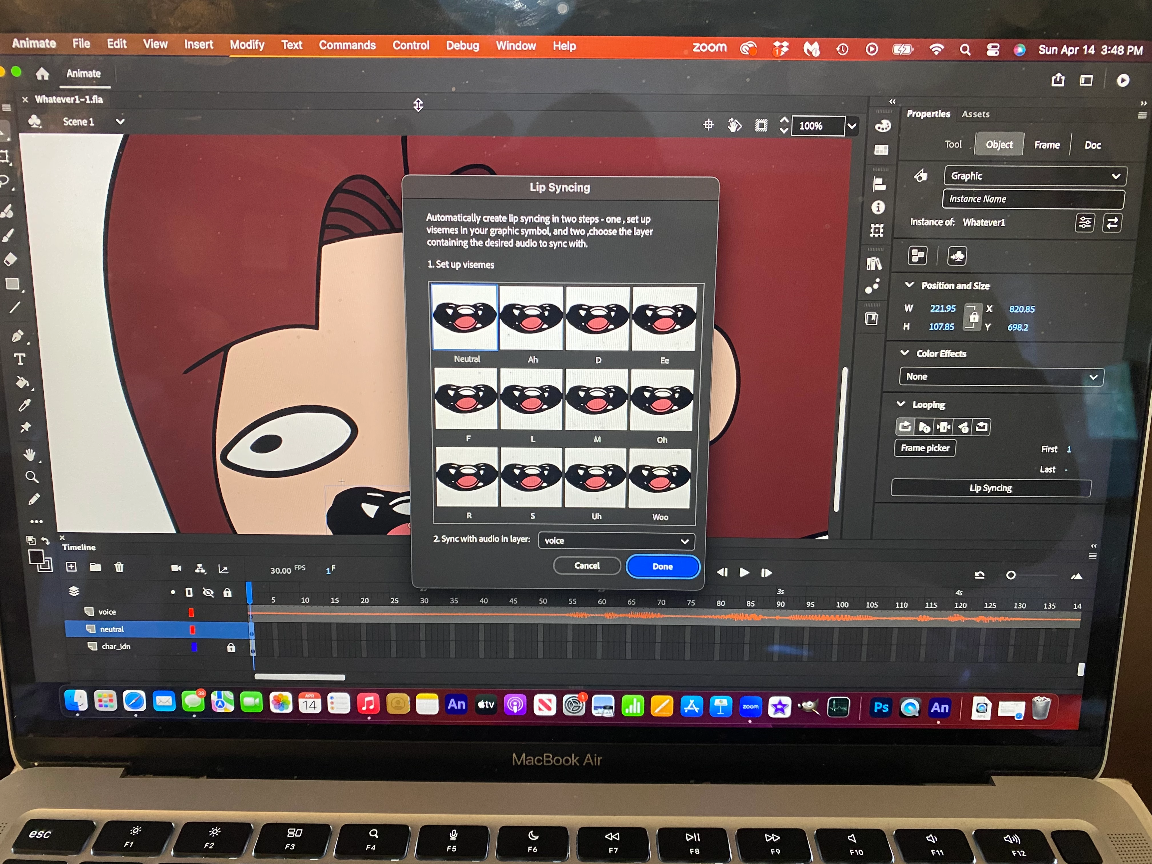 I have been working hard on using the animate feature. It seems everything I have tried has failed. I just attempted the "How I lip synch" by Wengsome. He is very good and everything seemed to work up about the end. In this tutorial he provides a photoshop ai fil with the head and visemes. The comes in after the voices are imported. When I keep them in a bundle they do not seperate in the time line each shape to the sound. The same is true in the automated lip synch. When I seperate them in then the auto lip synch function sees all of the shapes and in either case I am unable assign one viseme for each sound. I am just looking for someway to use the lip synch. any help is apprieciated, I have gone through about 4 tutorials plus a one on one about a month ago.