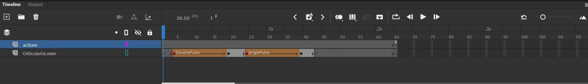 I am trying to loop a movie clip symbol. I want the loop to start at a later point in the timeline so that the double-pulse plays once, then only one pulse plays for the rest of the duration. However, when I tried to code this in HTML5, the single pulse plays as a wave. The code is called in the internal timeline of the pulses on the last frame of the loop, which is a blank keyframe.