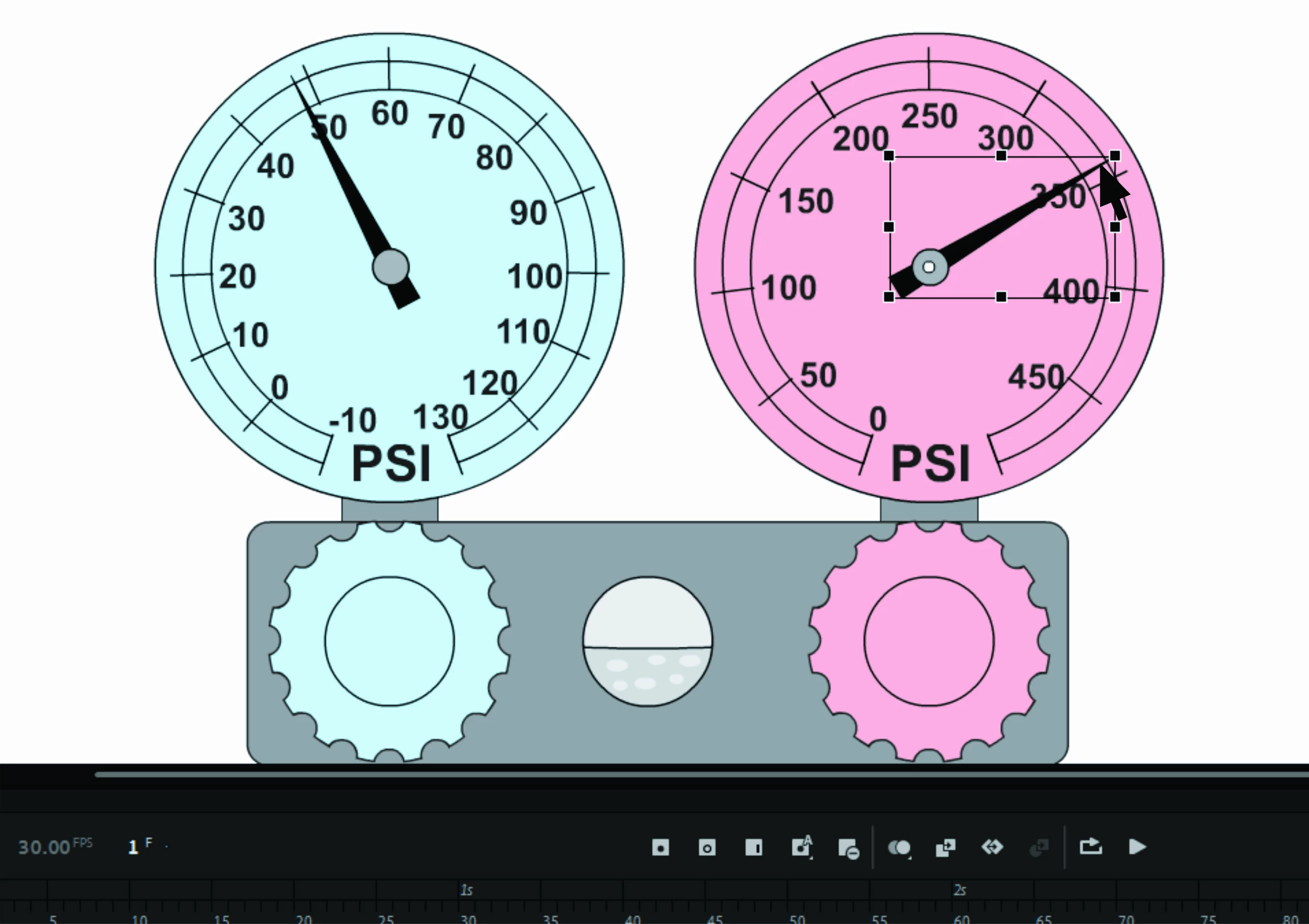 How do i make it so the user can click on the end of a gauge needle and turn it on its center point?