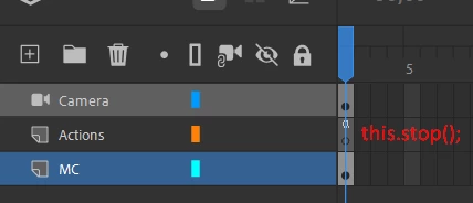 The first Frame of the main Timeline stops, with Javascript: this.stop();