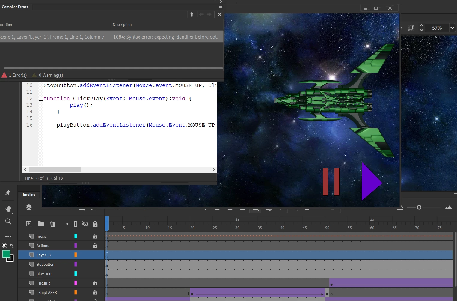 need help (need identifier before dot error) on animate cc