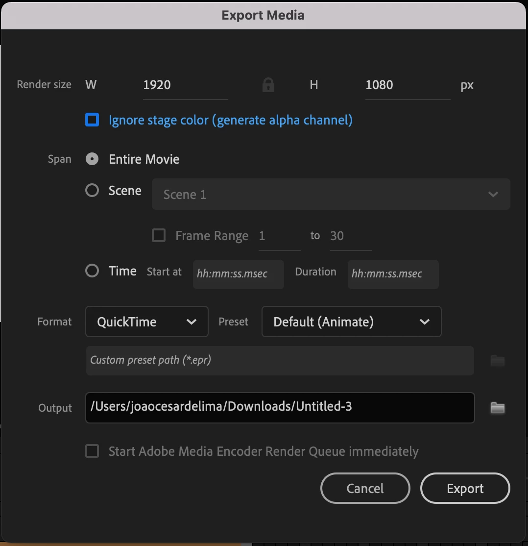 I am using Animate to create a movie and was going to export it, but realized that I need Media Encoder to do so. I am using the Adobe Apps through my school's plan, although it ended already and I just activated the free trials. I just needed a few days to work on it so I didn't think it would be an issue, but I noticed that I can't activate the trial for Media Encoder. Is there a way to export my Animate movie without Media Encoder?