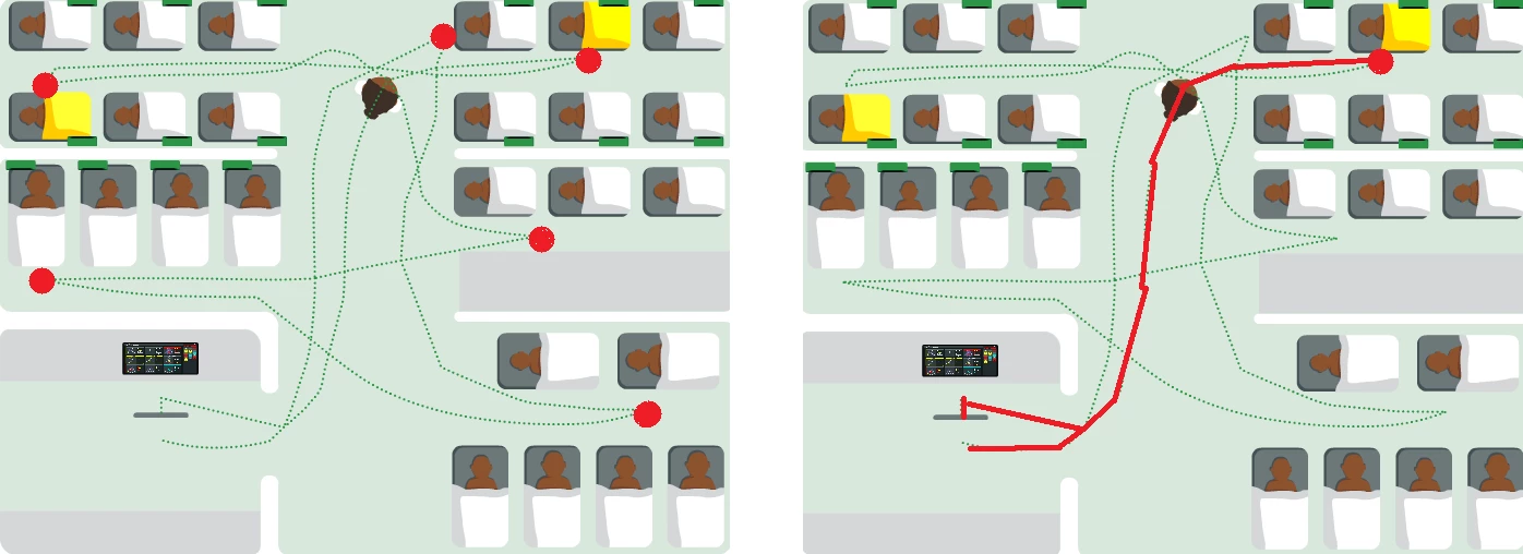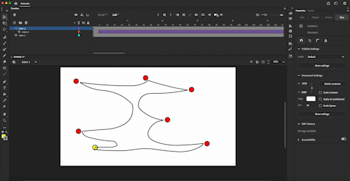 Underneith shows on the left the guide path with the dots where the nurse should stop. On the right, marked in red, the path is shown that the object follows after I add the keyframe.