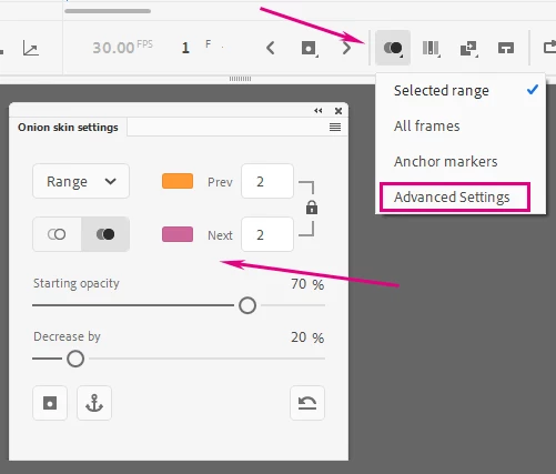 Onion Skin Colour Settings