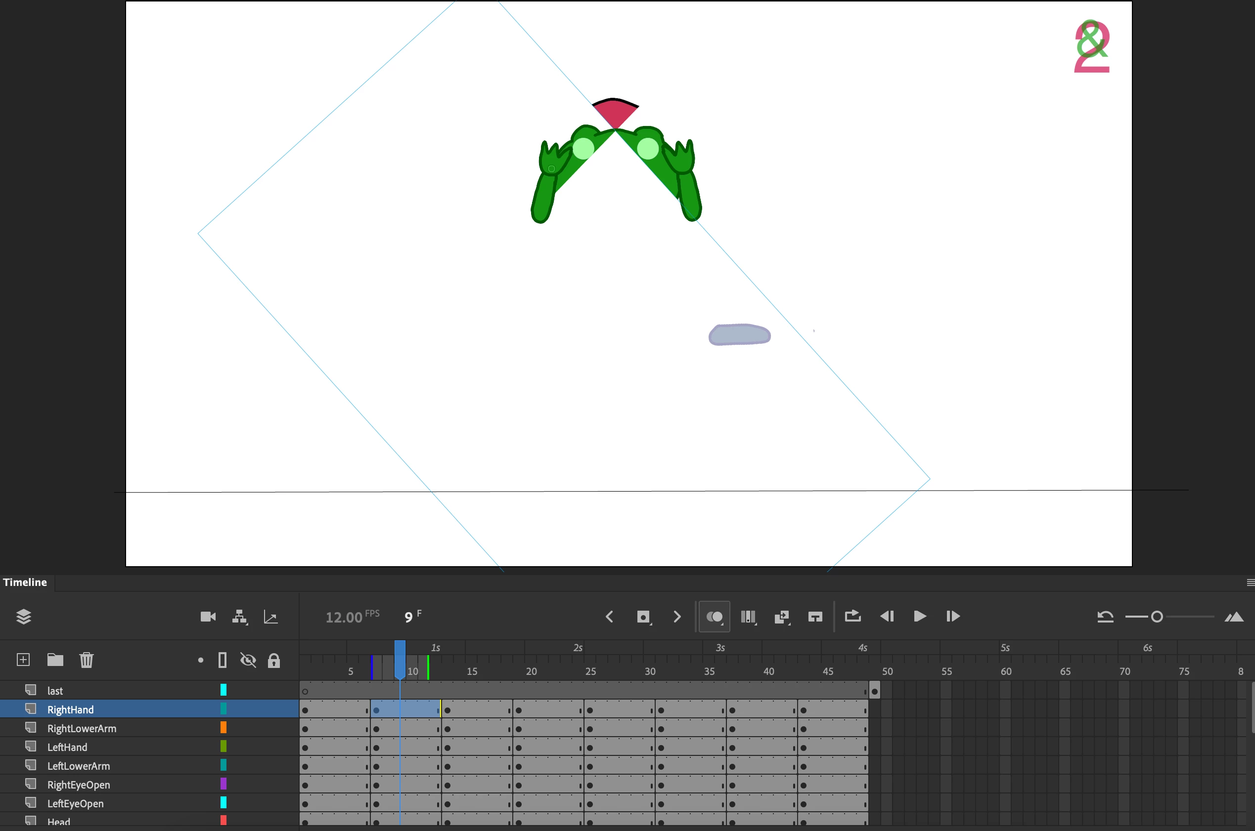 When turning on onion skinning, the majority of the character disappears - but not all of it. It looks as though the bounding box of the layer/object selected is obscuring the rest of the character.