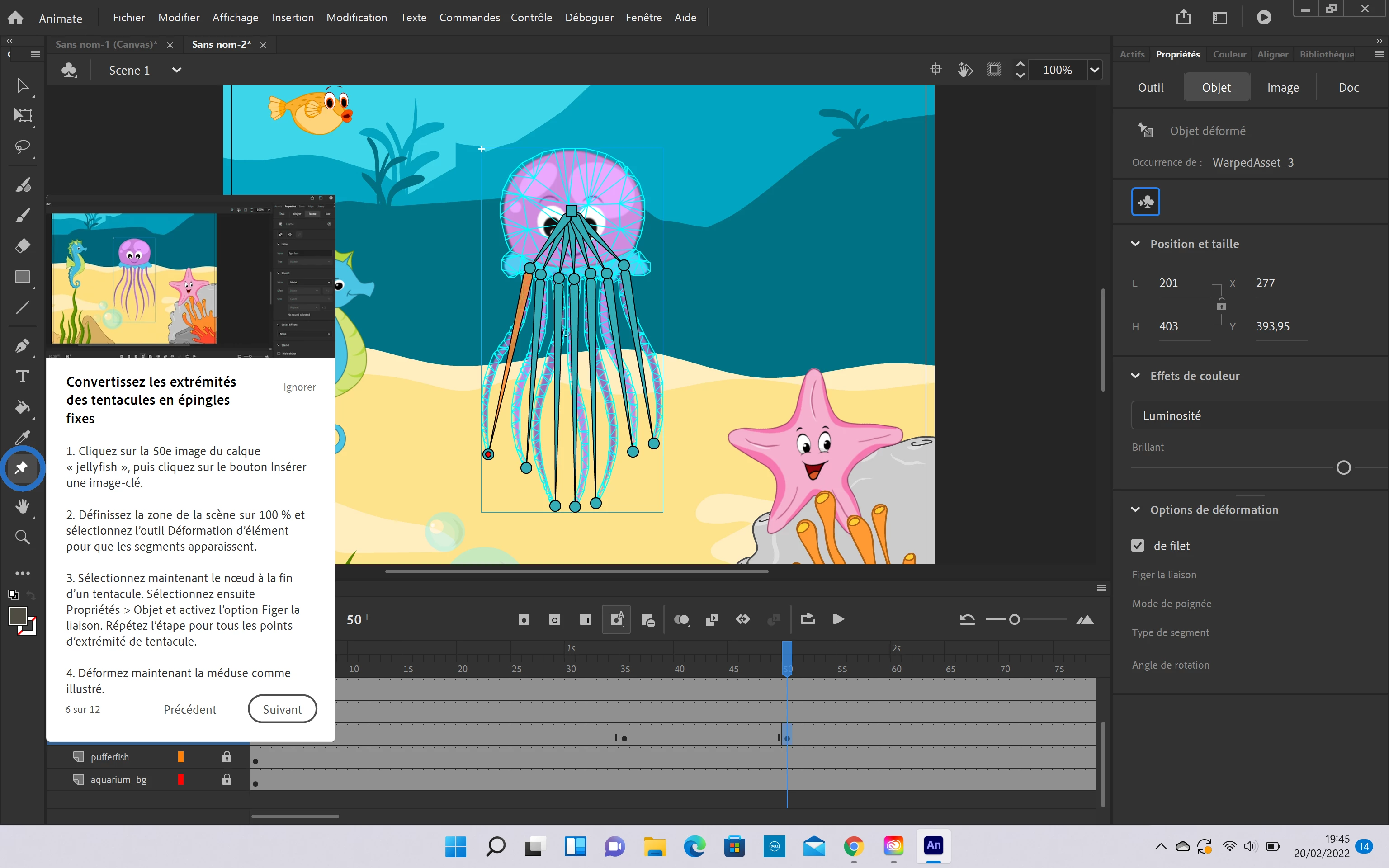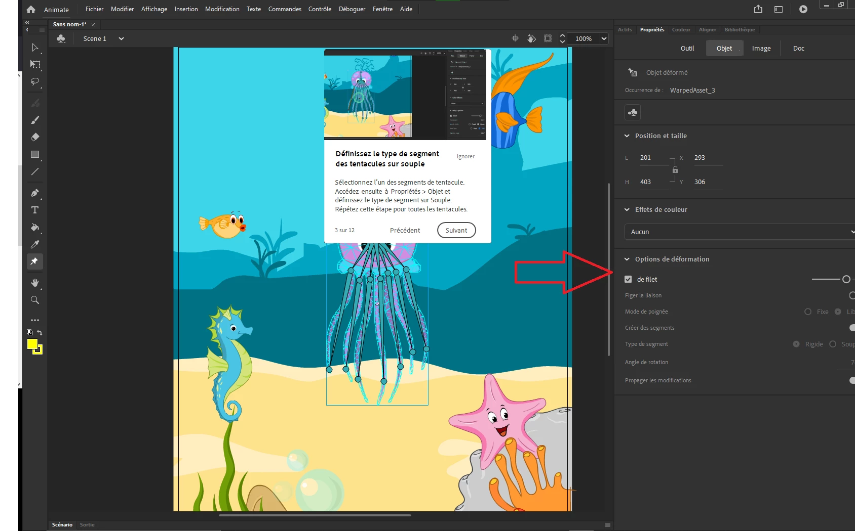 Bonjour, je suis le tutoriel animate avec la pieuvre et je n'ai pas le même nombre d'options de déformations (propriétés>Objet>options de déformations) qu'affichés sur le tutoriel. Je ne sais pas comment accéder aux options du tutoriel (notamment activer l'option figer la liaison, on peut voir sur la petite fenetre du tutoriel de mon screen qu'il y a plus d'options que sur ma version). Svp aidez moi, c'est ma première utilisation de ce logiciel et l'enfer commence !!