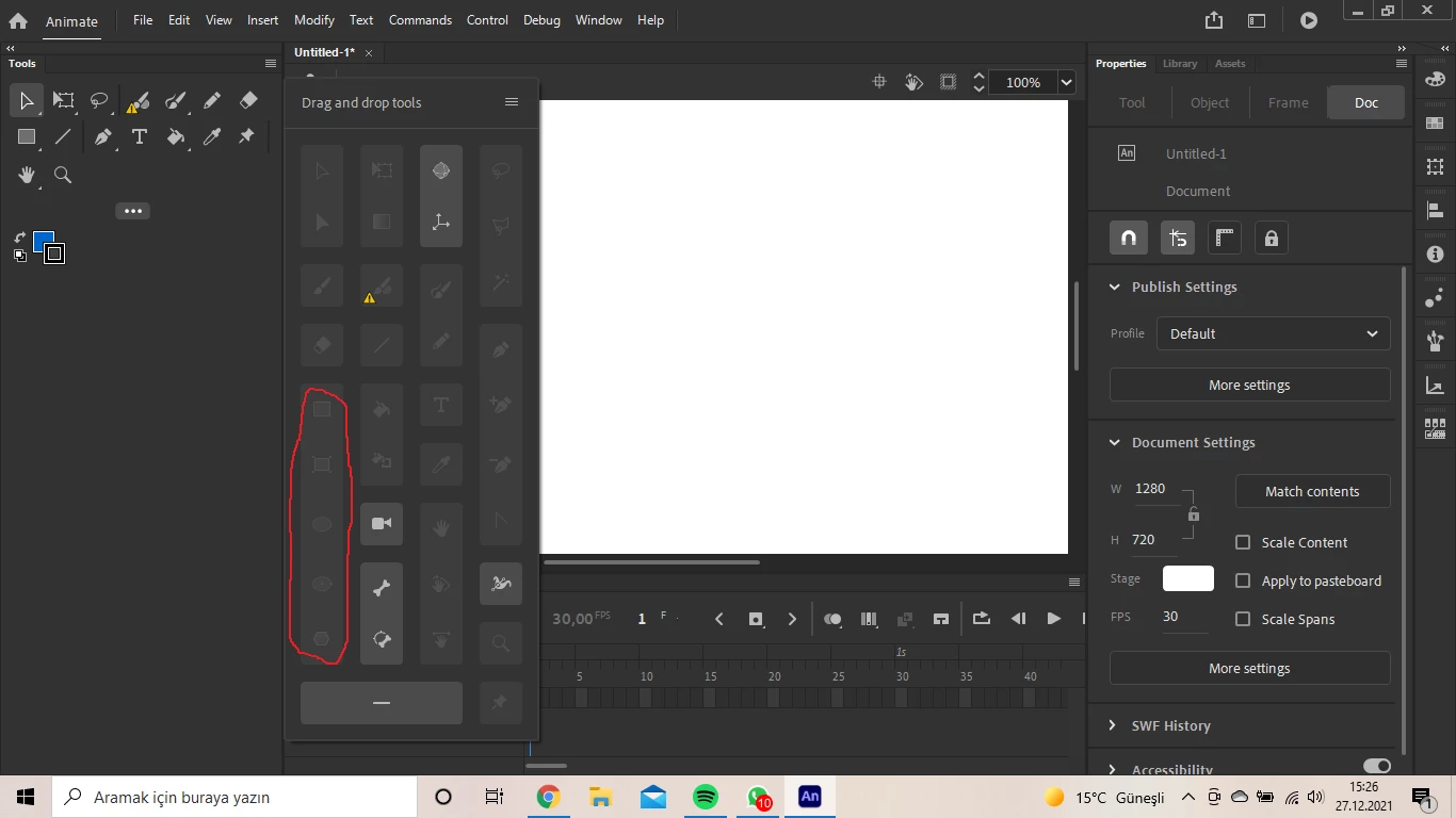 Oval tool cannot selected as you see. My animate version is current but my laptop directx version is older one. It is version 11. I cannot use fluid brush tool because of this reason by the way. Do you think this problem is happen because of directx ? Thanks for helping.