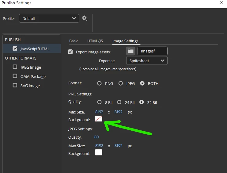 .PNG files transparency exports as white blocks in Spritesheet Publishing settings..?