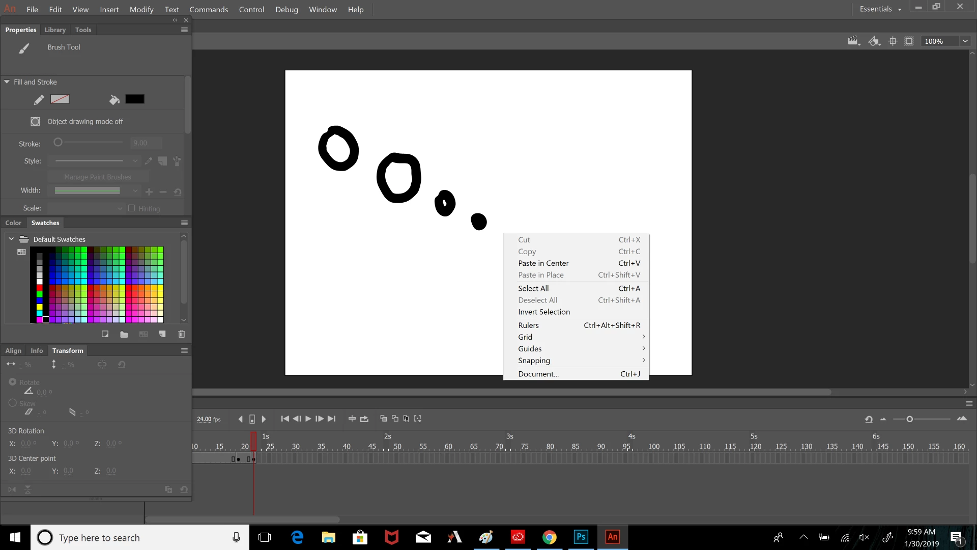 In photoshop, this menu comes up but it is not as sensitive to happening as the one in Animate