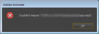 I'm new to I have been trying to import an .mp3 file into my HTML 5 Canvas file and have been unsuccessful. I have tried browsing through the forums and following some of the suggestions that I've seen and still getting a error dialog that just says Can't import 'file-name.mp3'. I'm on a Windows 7 machine.