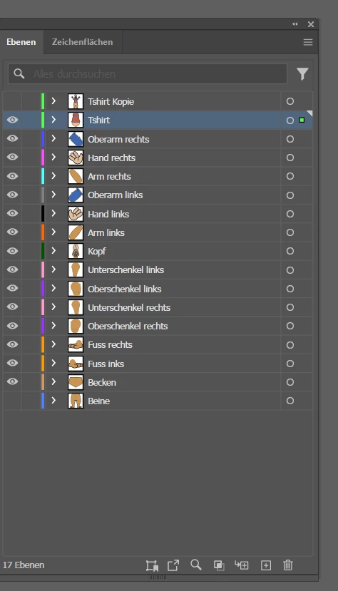 - Wie gestalte ich das Maskottchen in Illustrator, damit ich es mit den Ebenen / Gelenken sauber bewegen kann, ohne dass es sich zerstückelt?