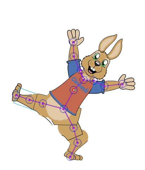Dank euch konnte ich die erste einfache Animation mit Riggen bewerkstelligen. Ich möchte nun aber sauberer und professioneller Arbeiten und bin dran, unser Maskottchen in verschiedenen Ebenen einzuteilen für die Animation. Aber schon daran scheitert es, da unser Maskottchen... alles andere als anatomisch korrekte Glieder hat. Besonders bei den Beinen habe ich extreme Probleme, einen Weg zu finden, wie ich es neu und sinnvoller für die Animation illustrieren kann. Da es sehr dicke unanatomische O-Beine hat. Ich habe versucht, es mit den Kreisen zu machen, die ich in diversen Tutorials gesehen habe. Aber für unseren Hasen scheint das nicht gut zu funktionieren.