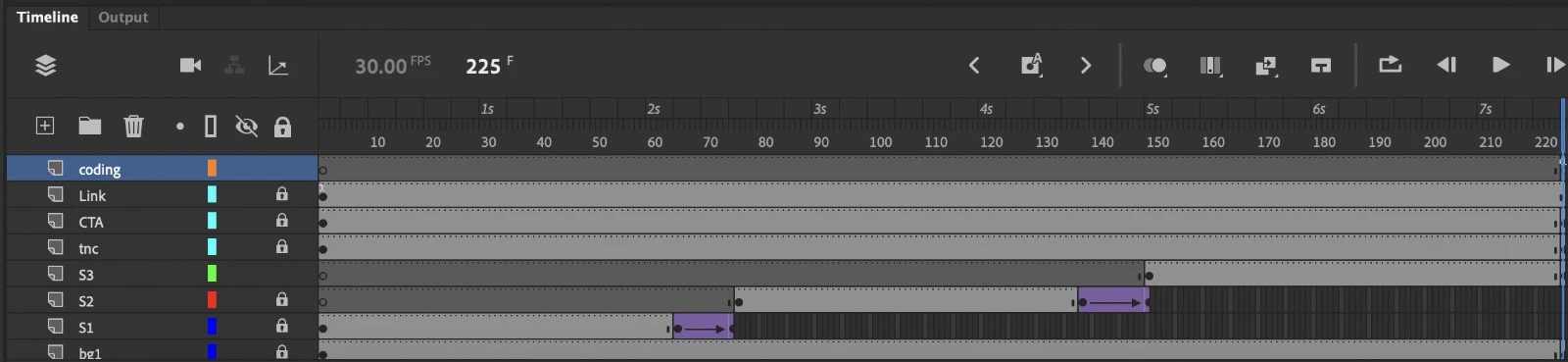I imported all the element from Illustrator, and named the layer with “S1” “S2” and “S3” .