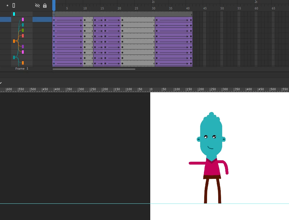 When trying to make a looped animation, I tried to copy the first frames to the end of the timeline and misconfigure shapes: