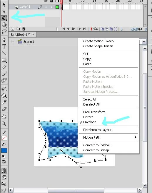 First you need pres CTR + B to Break Apart then right click over the image and select "Envelope"